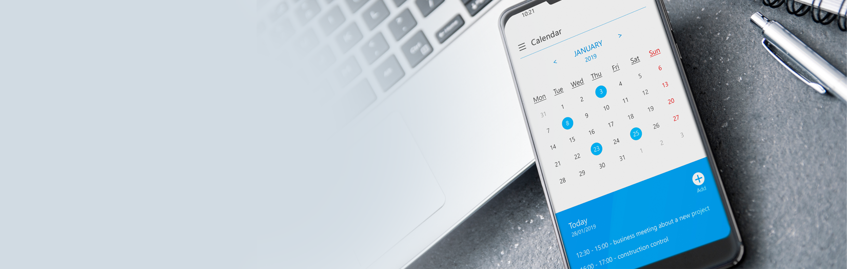 Online TerminkalenderDie Echtzeit-TerminverwaltungMit dem Online Terminkalender in Ihrem persönlichen Kundenbereich haben Sie die Möglichkeit schnell und kompetent Ihre Terminverwaltung auszulagern. Sämtliche Anforderungen wie Terminlängen, Kategorien, Zeitfenster, etc. werden individuell an Ihre Bedürfnisse angepasst und ermöglichen sowohl Ihnen als auch unseren Mitarbeitern ortsunabhängig alle Termine zu verwalten. Eine Tages- oder Wochenansicht bietet zusätzlich einen strukturierten Gesamtüberblick aller Termine. Ihr Vorteil